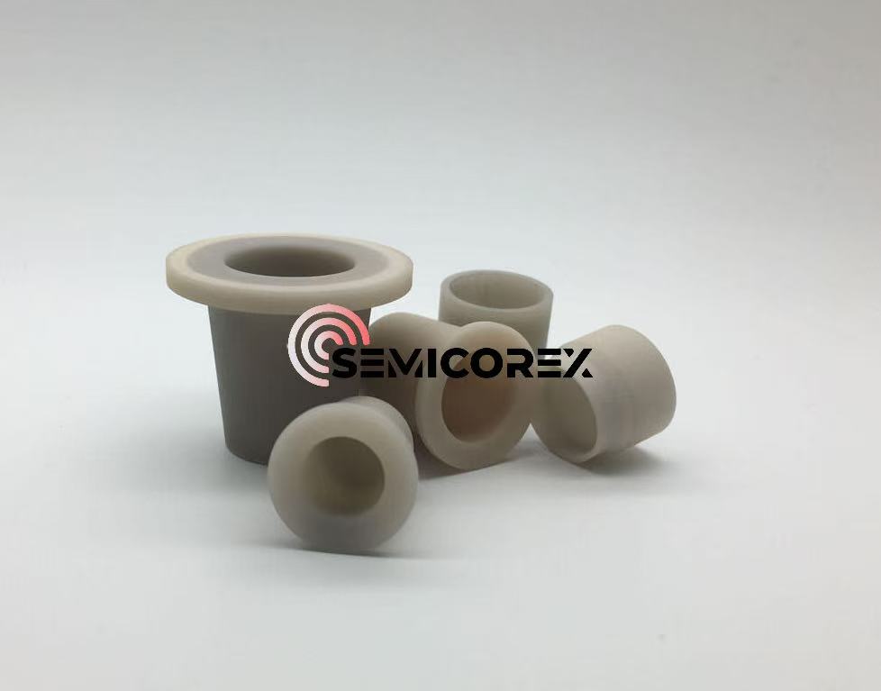 क्वार्ट्ज क्रूसिबल्समधील Si अशुद्धता काढून टाकण्यासाठी आणि उत्पादनाची शुद्धता सुधारण्यासाठी गॅलियम आर्सेनाइड (GaAs) सारख्या मिश्रित अर्धसंवाहकांच्या संश्लेषणामध्ये ॲल्युमिनियम नायट्राइड क्रूसिबल्सचा वापर केला जातो. ते सिरेमिक हीटर्स, इलेक्ट्रोस्टॅटिक चक आणि इतर घटकांसाठी सब्सट्रेट म्हणून देखील कार्य करू शकतात, उच्च-तापमान, उच्च-परिशुद्धता आणि सेमीकंडक्टर उपकरणांच्या इन्सुलेशन मानकांशी पूर्णपणे जुळतात.