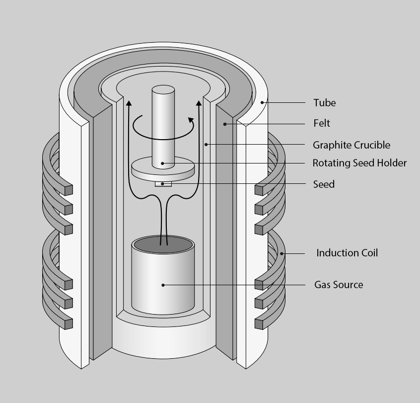 सिलिकॉन कार्बाइड क्रिस्टल्सच्या वाढीसाठी क्रिस्टल ग्रोथ फर्नेस ही मुख्य उपकरणे आहेत. हे पारंपारिक क्रिस्टलीय सिलिकॉन-ग्रेड क्रिस्टल ग्रोथ फर्नेससारखेच आहे. भट्टीची रचना फारशी गुंतागुंतीची नाही. हे प्रामुख्याने फर्नेस बॉडी, हीटिंग सिस्टम, कॉइल ट्रान्समिशन यंत्रणा, व्हॅक्यूम अधिग्रहण आणि मोजमाप प्रणाली, गॅस पथ सिस्टम, कूलिंग सिस्टम, कंट्रोल सिस्टम इत्यादी बनलेले आहे. थर्मल फील्ड आणि प्रक्रियेची परिस्थिती एसआयसी क्रिस्टलची गुणवत्ता, आकार आणि चालकता यासारखे मुख्य निर्देशक निर्धारित करते.
