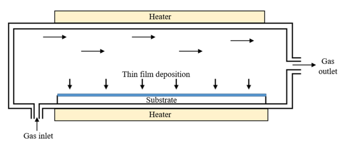 1. प्रतिक्रिया पूर्ववर्ती वाहक वायूद्वारे प्रतिक्रिया कक्षामध्ये वितरित केल्या जातात. सब्सट्रेटपर्यंत पोहोचण्यापूर्वी, अभिक्रिया वायू मुख्य वायू प्रवाहात एकसंध वायू-टप्प्यावरील प्रतिक्रियांमधून जाऊ शकतात, ज्यामुळे काही मध्यवर्ती उत्पादने आणि क्लस्टर्स तयार होतात.