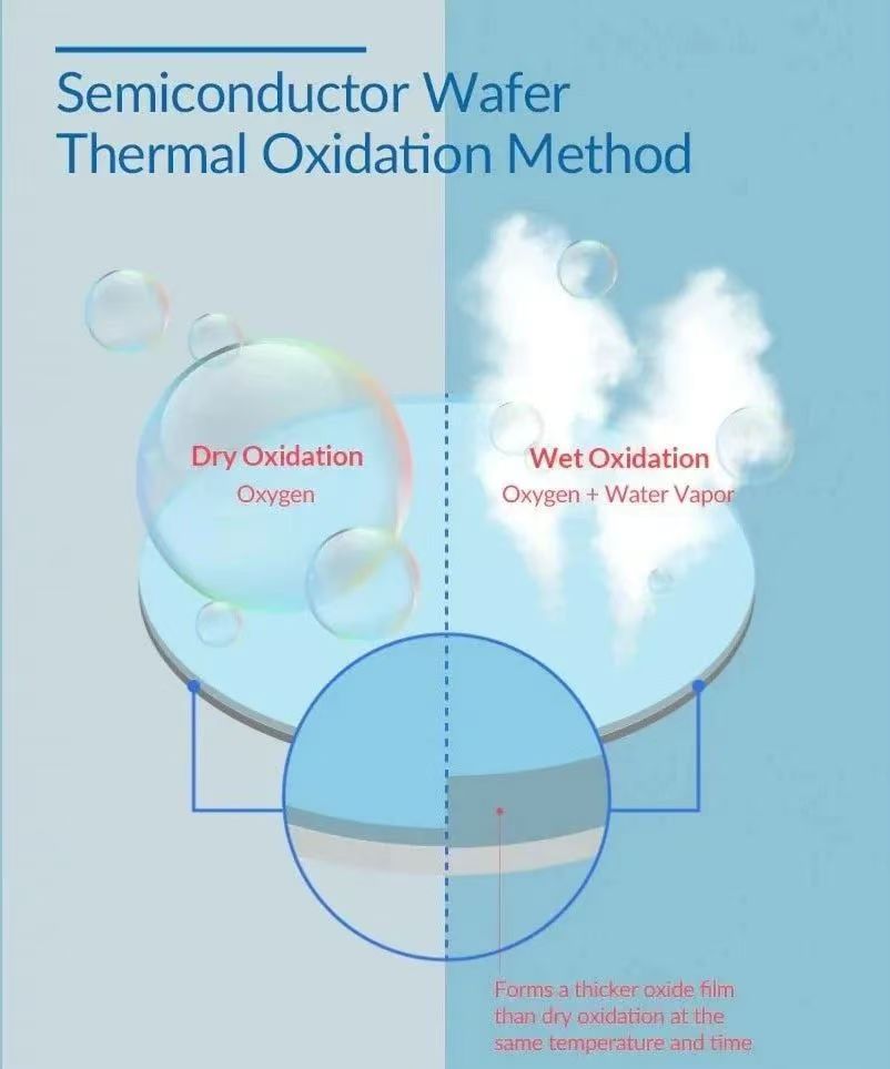 ओले ऑक्सिडेशन सिलिकॉन वेफर्सना उच्च-तापमानाच्या पाण्याच्या वाफेच्या संपर्कात आणून चालते, ज्यामुळे सिलिकॉन आणि बाष्प यांच्यामध्ये रासायनिक अभिक्रिया होऊन सिलिकॉन डायऑक्साइड (SiO₂) तयार होतो. ही प्रक्रिया कमी एकसमानता आणि घनतेसह ऑक्साईड स्तर तयार करते आणि H₂ सारखी अनिष्ट उप-उत्पादने तयार करते, जी सामान्यत: मुख्य प्रक्रियेत वापरली जात नाहीत. याचे कारण म्हणजे ऑक्साईड फिल्मचा वाढीचा दर जलद आहे कारण पाण्याच्या वाफेची प्रतिक्रिया शुद्ध ऑक्सिजनपेक्षा जास्त आहे. म्हणून, सेमीकंडक्टर उत्पादनाच्या मुख्य प्रक्रियेमध्ये ओले ऑक्सिडेशन सहसा वापरले जात नाही.