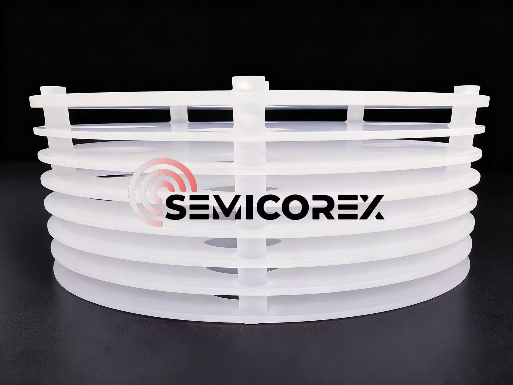 उच्च-शुद्धता क्वार्ट्ज सामग्रीद्वारे तयार केलेले, सेमीकोरेक्स क्वार्ट्ज थर्मॉस कंटेनर हे उच्च-तापमान वातावरणात स्थिरता राखण्यासाठी सेमीकंडक्टर उत्पादन प्रक्रियेमध्ये सिलिकॉन वेफर वाहकांना समर्थन आणि इन्सुलेशन प्रदान करण्यासाठी आवश्यक घटक आहेत. प्रगत सेमीकंडक्टर उत्पादनामध्ये प्रसार, ऑक्सिडेशन आणि ॲनिलिंग प्रक्रियेमध्ये याचा मोठ्या प्रमाणावर वापर केला जातो. त्यांची गुणवत्ता थेट सिलिकॉन वेफरच्या उत्पन्नावर आणि चिप कार्यक्षमतेवर परिणाम करते.